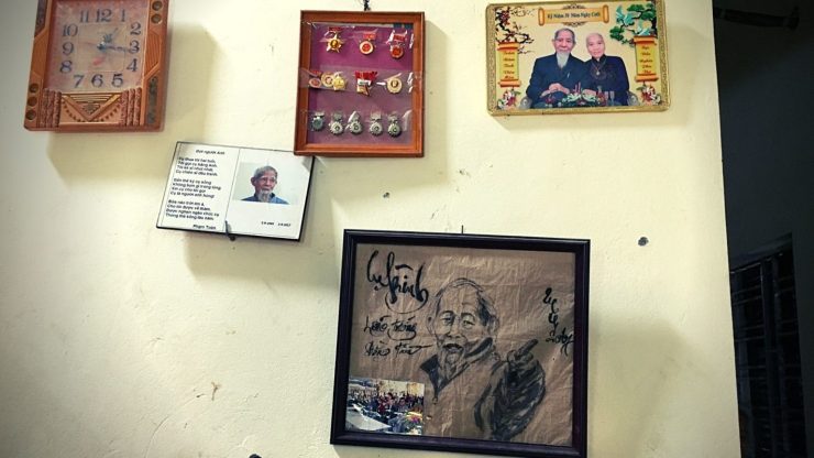“These things, when he was alive, he treasured them so much,” Mrs. Thanh said, looking up at the medals. “He was given an award when he reached his 55th year as a Communist Party member.”