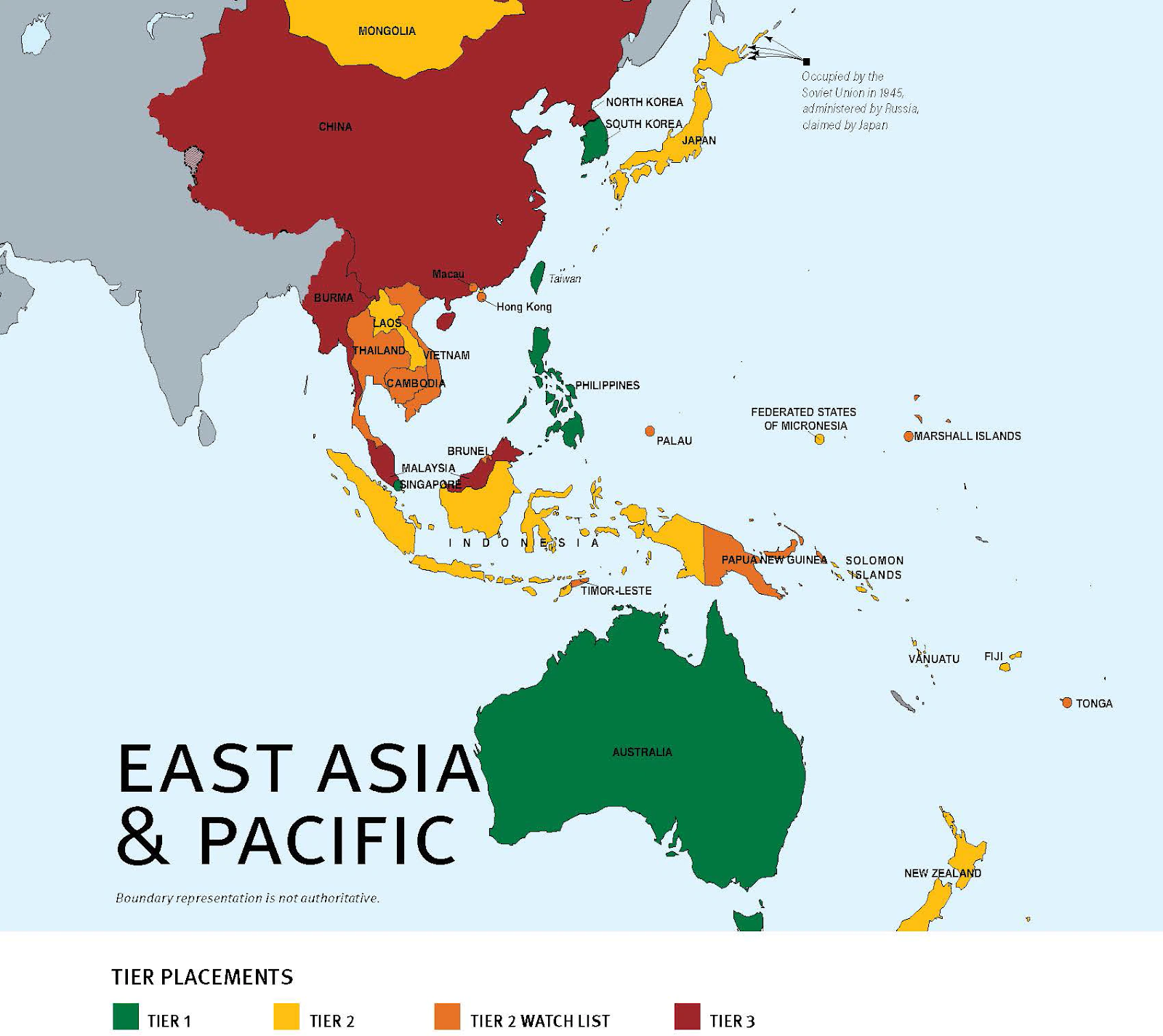According to the placement guiding [2], governments that fully meet the Trafficking Victims Protection Act’s (TVPA) minimum standards to eliminate human trafficking are placed on “Tier 1.” In contrast, countries that fail to meet minimum standards but make a significant effort to comply are ranked as “Tier 2.”