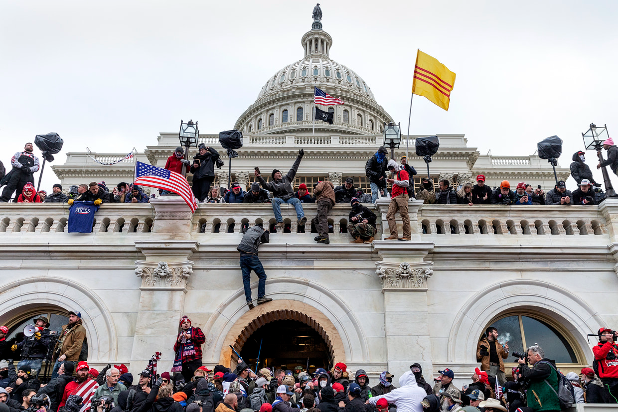 Spotted in the crowd of rioters storming the U.S. Capitol on January 6, 2021, is the yellow flag with three stripes - the flag of the RVN, a country that no longer exists.