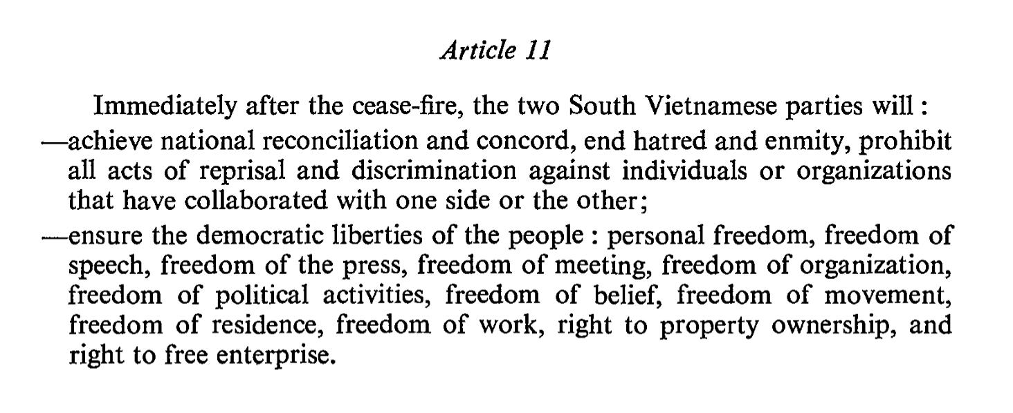The agreement helped the United States open a special resettlement program for re-education camp prisoners, also known as the "Humanitarian Operation (H.O.)" program. Previously, South Vietnam’s military veterans could also come to the United States for family reunification under the Orderly Departure Program (O.D.P.).