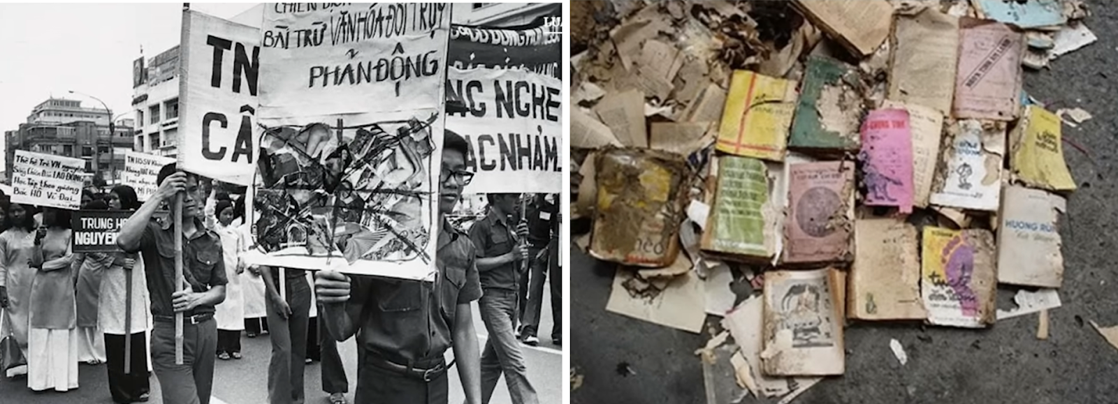 In truth, the exile community had already begun efforts to revive Southern literature and arts. Cassette tapes of Southern music were reproduced and sold in Vietnamese refugee settlements in America and around the world. Books that were banned, confiscated, and burned by the Communist regime have also been photographed; many were borrowed from the Library of Congress and Cornell University, and reprinted overseas.