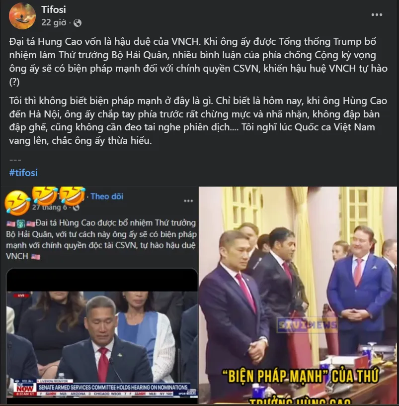 Photo: A Vietnamese extreme nationalist account, under the name ‘Tifosi,’ ridiculing Hùng Cao.
